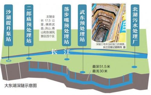 新建的北湖污水處理廠一期規(guī)模就達(dá)到80萬噸每天,將中心城區(qū)四座污水處理廠集并到城郊。在中心城區(qū)建設(shè)全國(guó)首條深層污水傳輸隧道——大東湖深隧,目前已投入使用,極大提升了武昌、青山片區(qū)的污水收集處理能力。