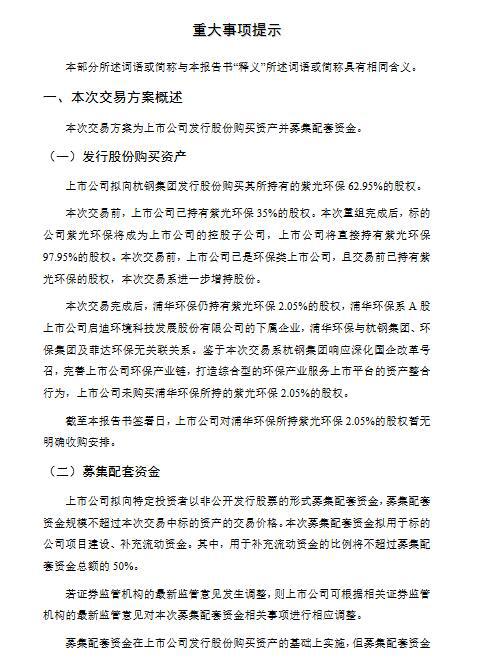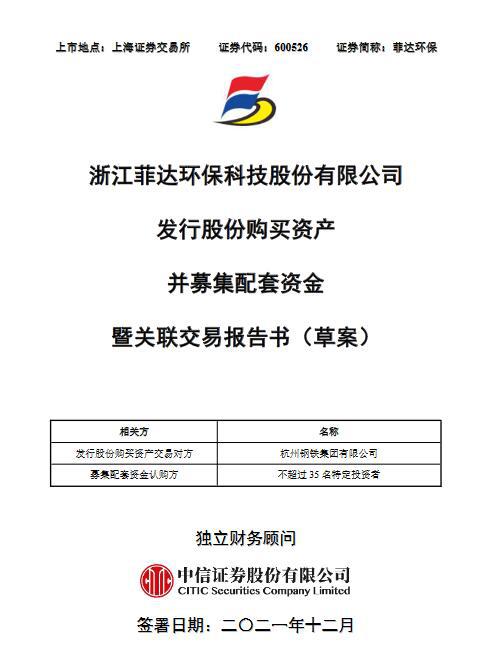 12月16日菲達(dá)環(huán)保公布發(fā)行股份購買資產(chǎn)并募集配套資金暨關(guān)聯(lián)交易報告書(草案),上市公司擬向公司控股股東杭鋼集團(tuán)發(fā)行股份購買其所持有的紫光環(huán)保62.95%的股權(quán)。