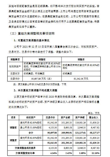 綜合考慮象山環(huán)保的項目運營情況、盈利能力及其對于上市公司重組完成后盈利能力的影響后,上市公司董事會本著增厚上市公司收益的交易原則,審慎修訂了本次交易標(biāo)的范圍。最終,公司決定調(diào)整本次重組方案,將收購的標(biāo)的資產(chǎn)范圍由紫光環(huán)保62.95%股權(quán)和象山環(huán)保51.00%股權(quán)變更為紫光環(huán)保62.95%股權(quán)。